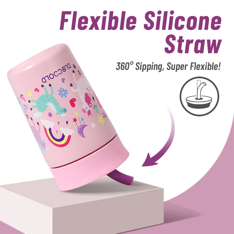 DLOCCOLD Kids Insulation Stainless Steel Tumbler with Spill Resistant Flexible Straw